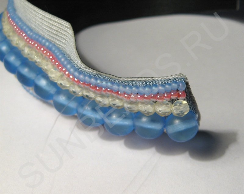 На фото видно расположение бисерин по отношению к вышивке. Бисерины располагаются бочком.