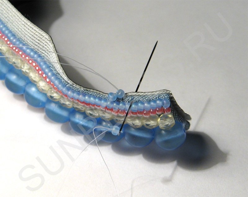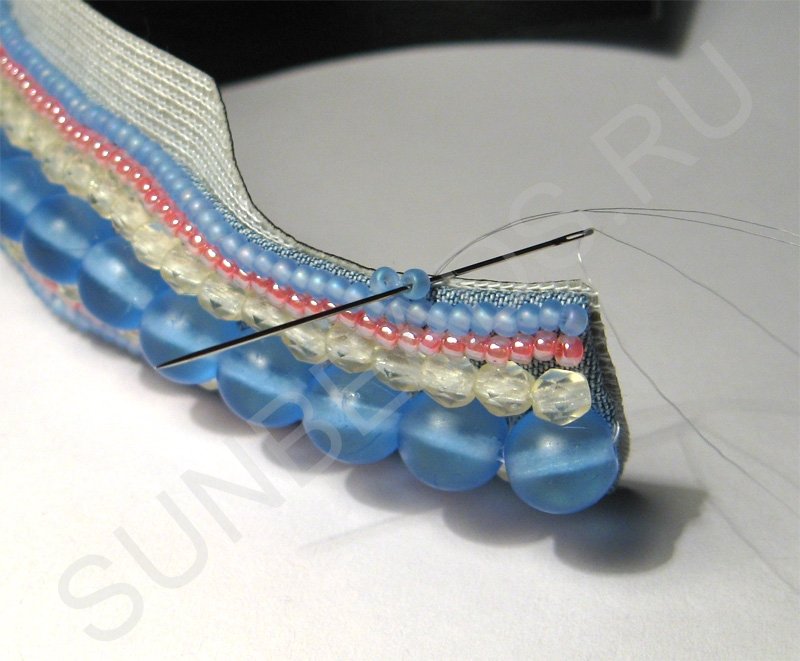 Продолжаем сшивать слои, добавляя по одной бисерине.