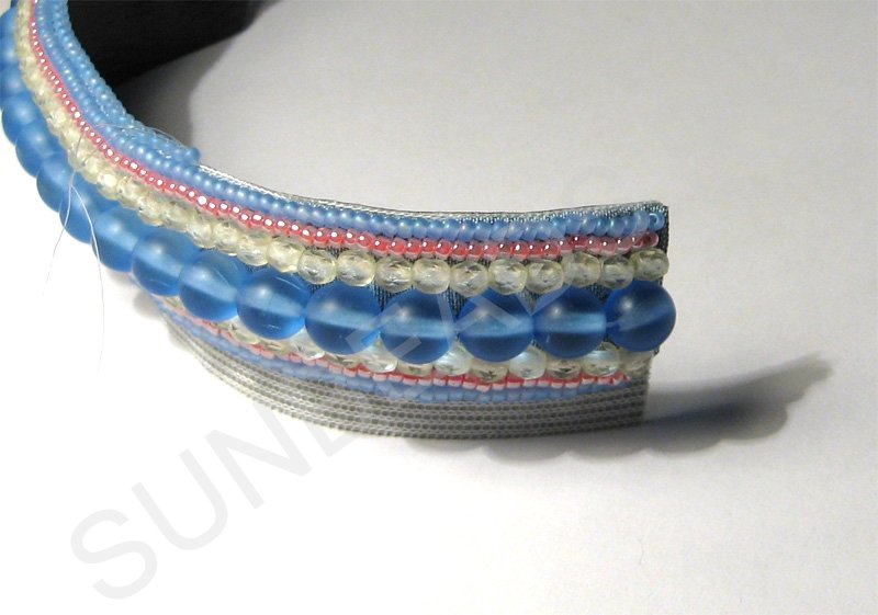 Теперь надо обработать края. Сшиваем два слоя: вышивку и внутренний слой браслета.
