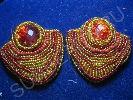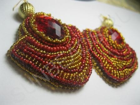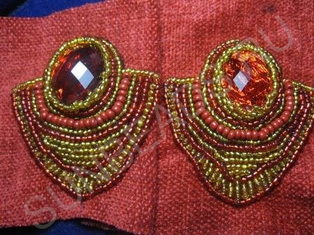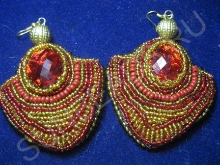 Индийские женщины любят украшать себя массивными украшениями. Порой вес всех аксессуаров красавицы достигает десятка килограмм. В данном мастер-классе предлагается воссоздать серьги, фасон которых девушки Индии частенько предпочитают одевать на торжественные мероприятия. Главное отличие предлагаемый вариант намного легче оригинала и изготовлен из бисера в технике вышивания.