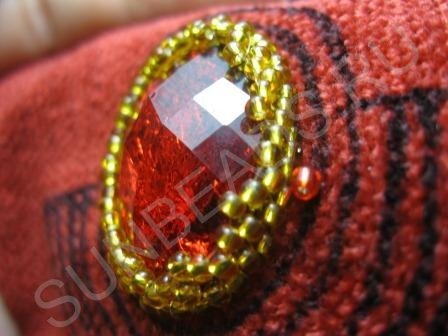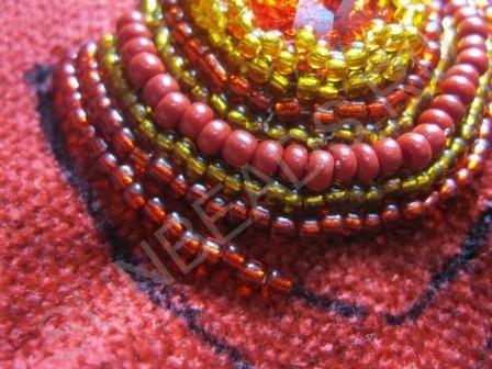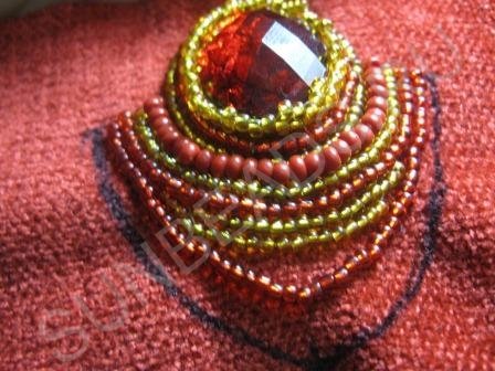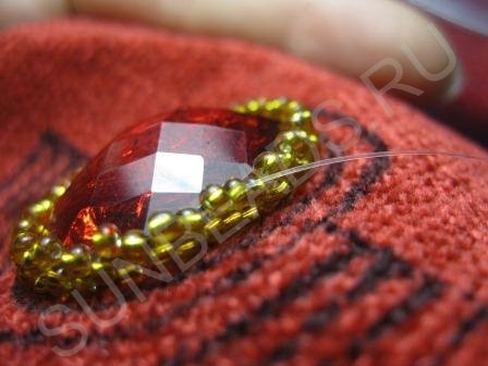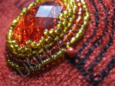 В любом украшении кабошон требует оплетения. Здесь использовалась схема мозаичного плотна. Вместо него можно также использовать и другие методы. Круговая мозаика включает в себя нечетное количество элементов первого ряда. На этом хотелось бы остановить особое внимание.