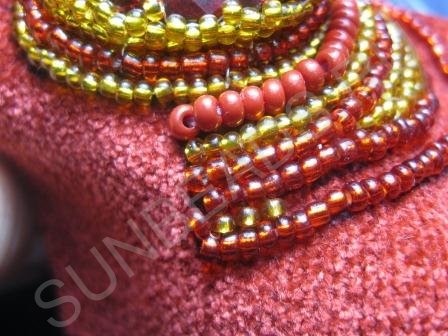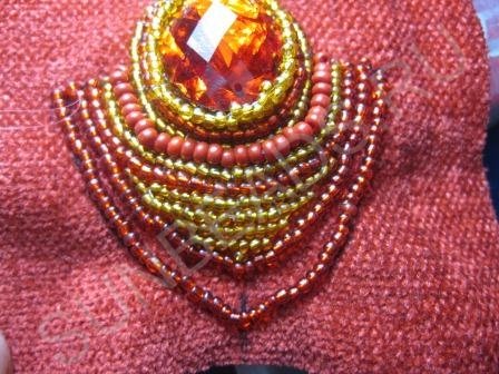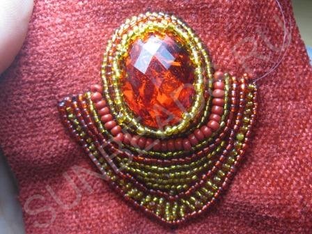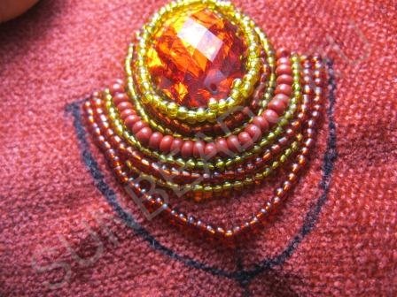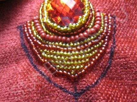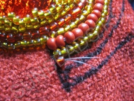Первый ряд нижней части украшения вышивается матовыми бисеринами несколько большего размера:
