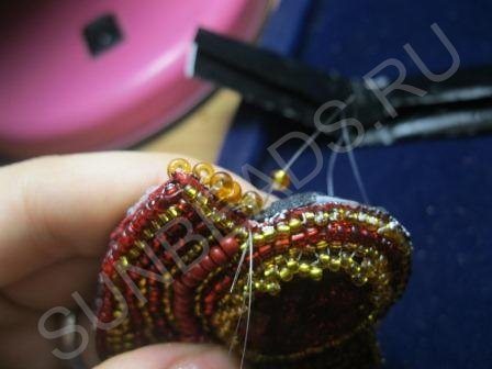 Теперь заполняем образованный полумесяц золотистыми бисеринами: