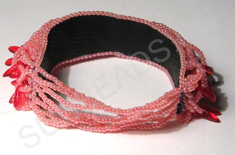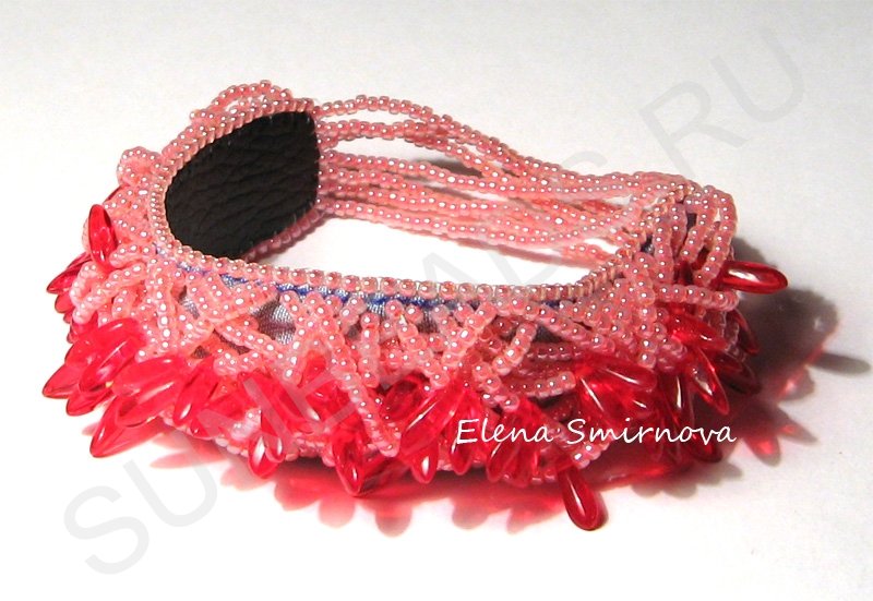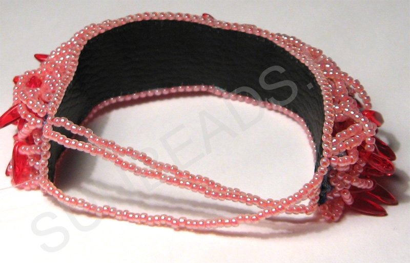 Вышитые украшения. Браслет с бусинами лепестками#
