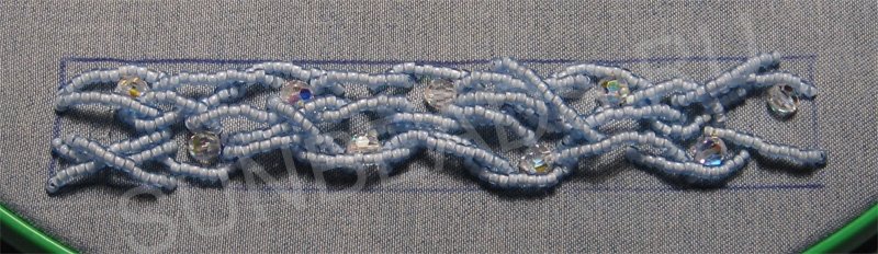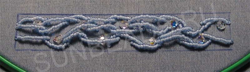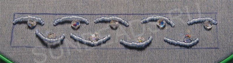 Теперь пришиваем круглый бисер дугами, огибая кристаллы Сваровски. Количество бисера в каждой дуге набирайте разное.