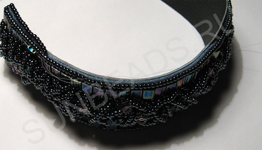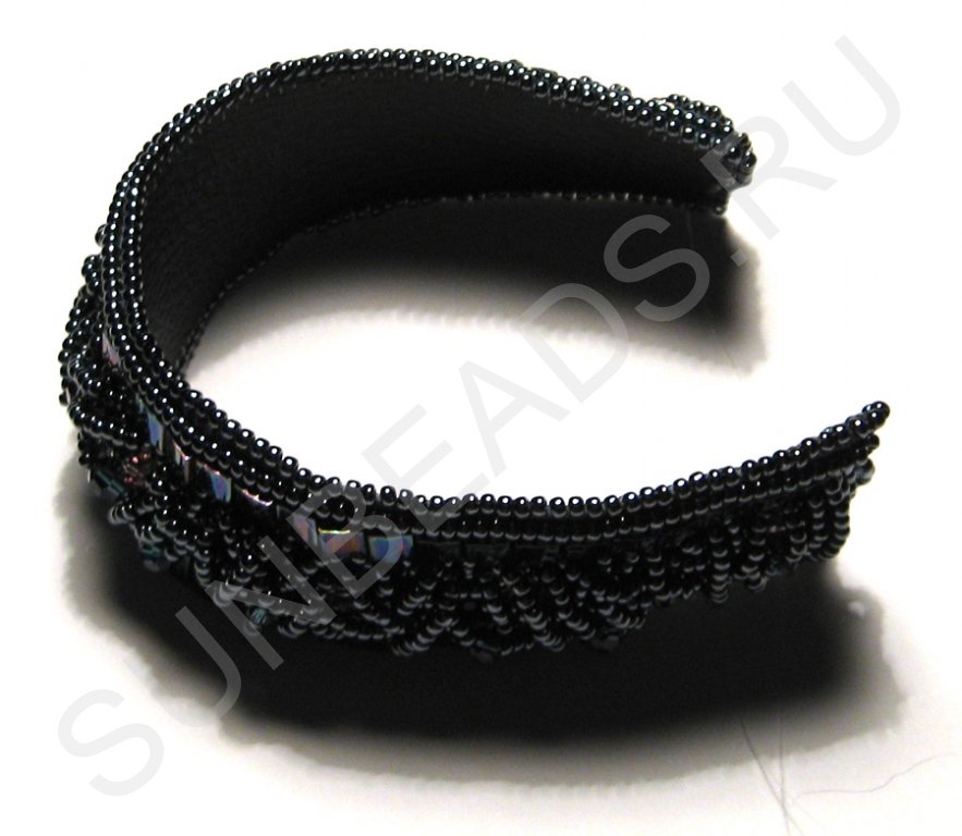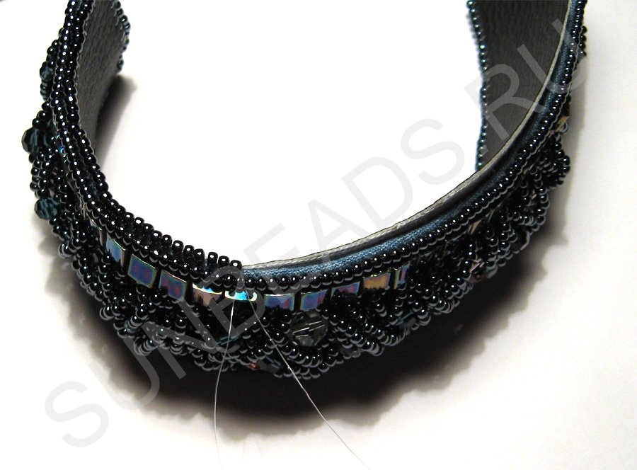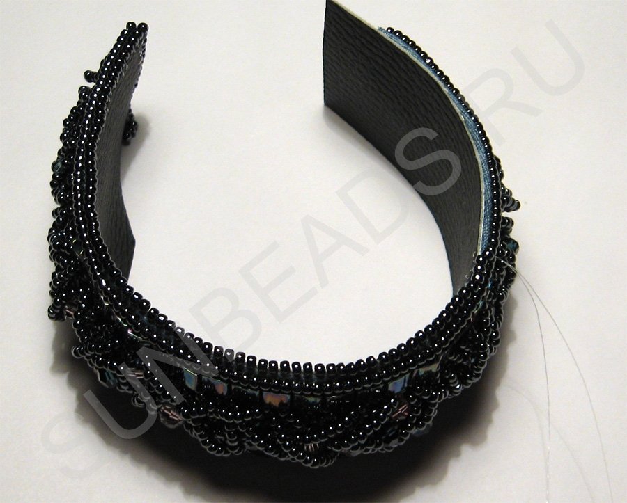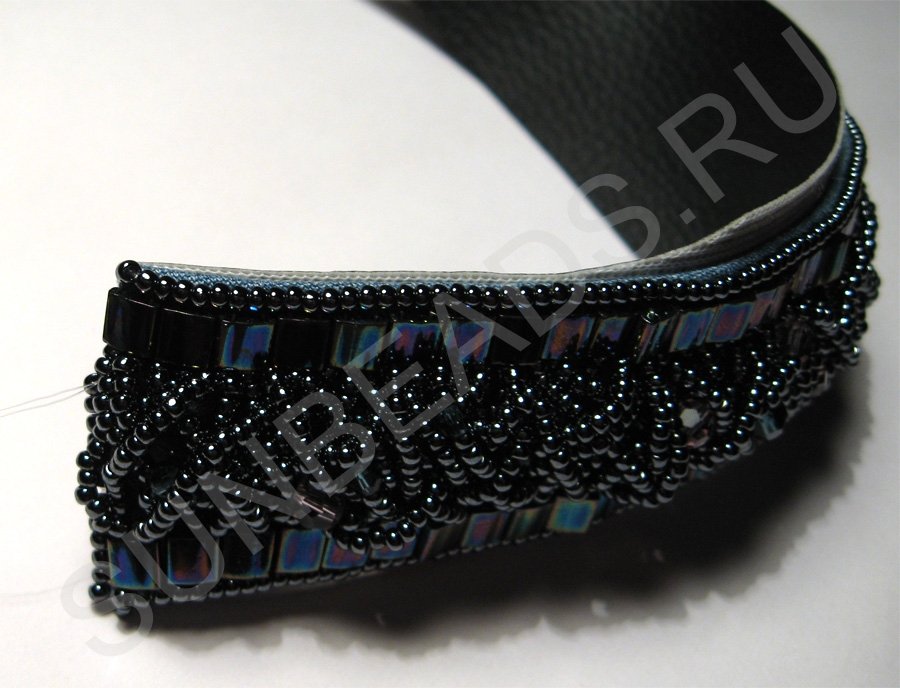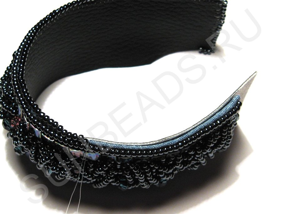 По краям браслета с обеих сторон пришьем круглый бисер в один ряд.