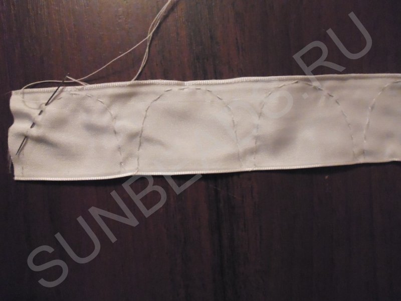 Соединяем присборенную ленту в круг и аккуратно подшиваем необработанные края с изнанки.