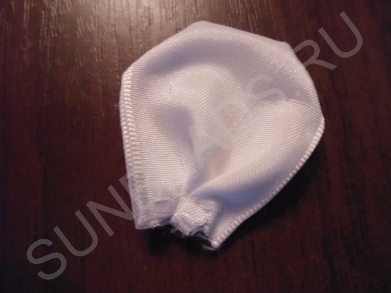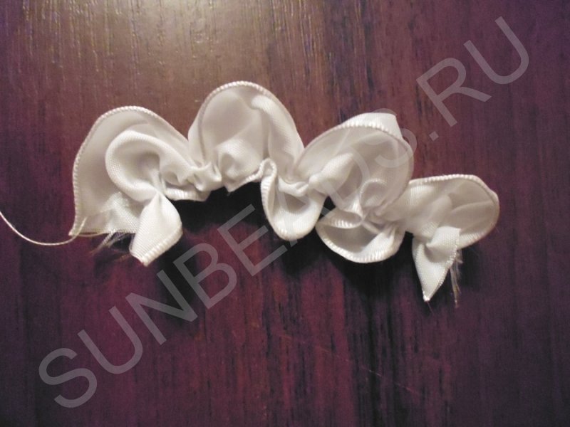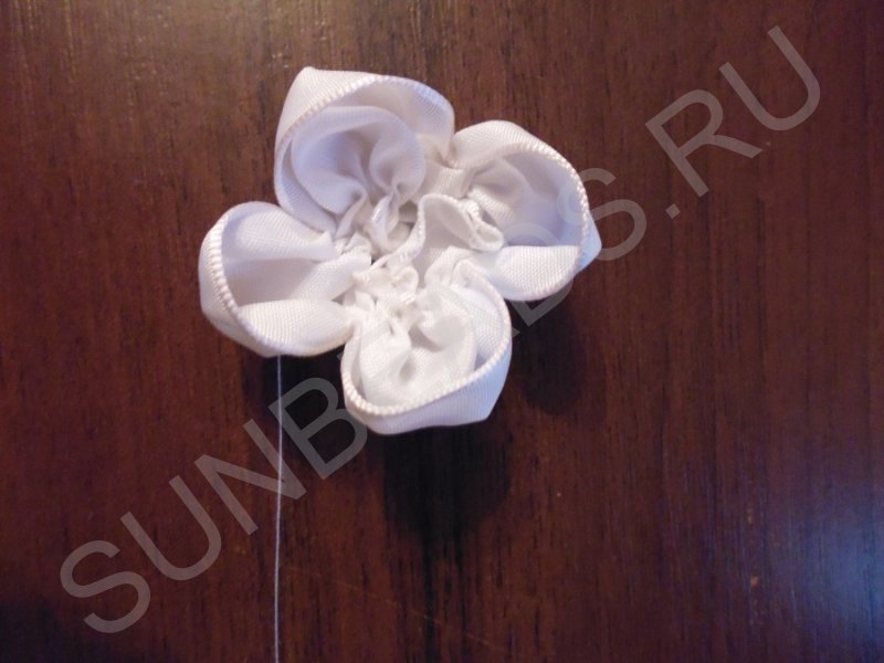 Туго стягиваем ленту, формируя лепестки.