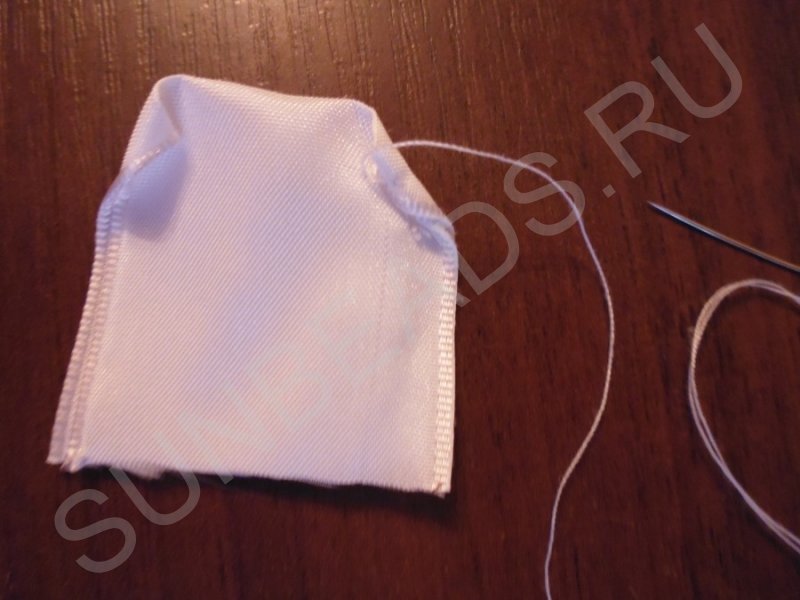 С каждой стороны делаем по две складки и фиксируем их ниткой. Так же делаем второй листик.