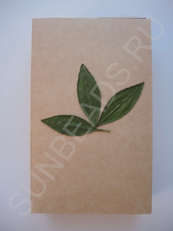 Кладем веточку с ягодами и шишками поверх листьев и закрепляем белой нитью.