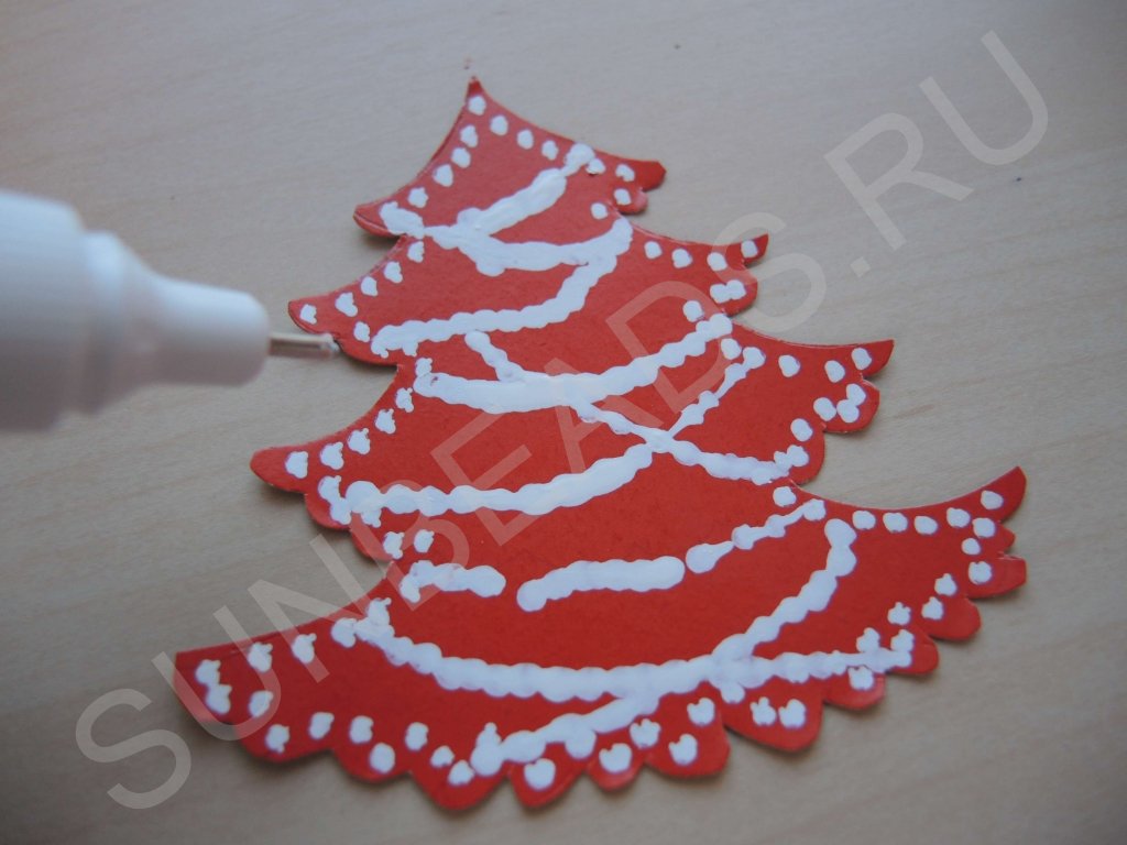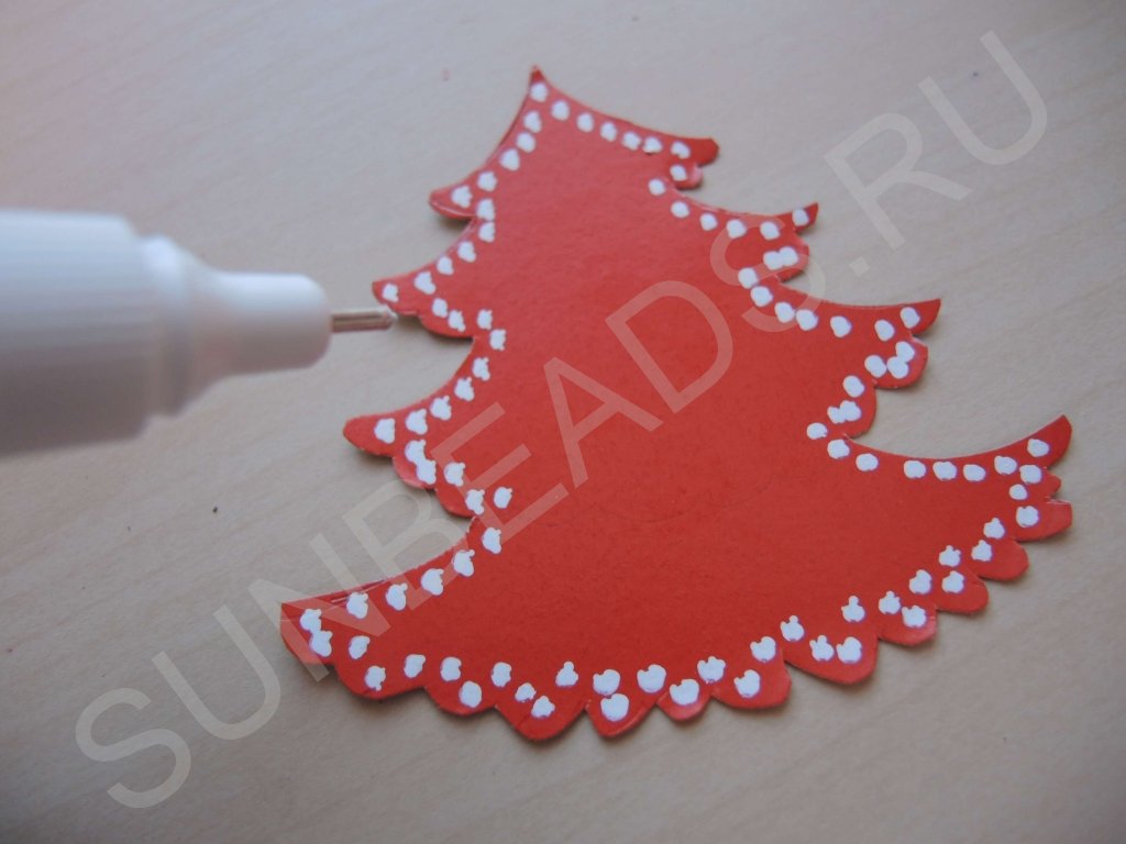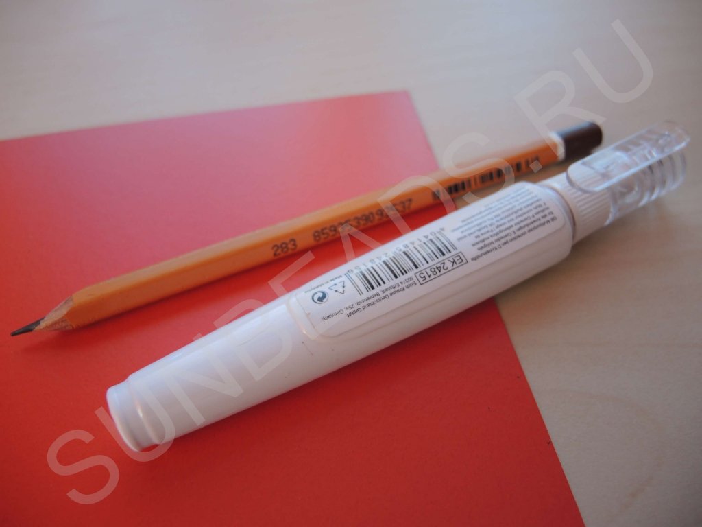 Для этого нам нужны лишь красный картон, штрих, карандаш и ножницы. Штрих можно заменить белой гуашь.