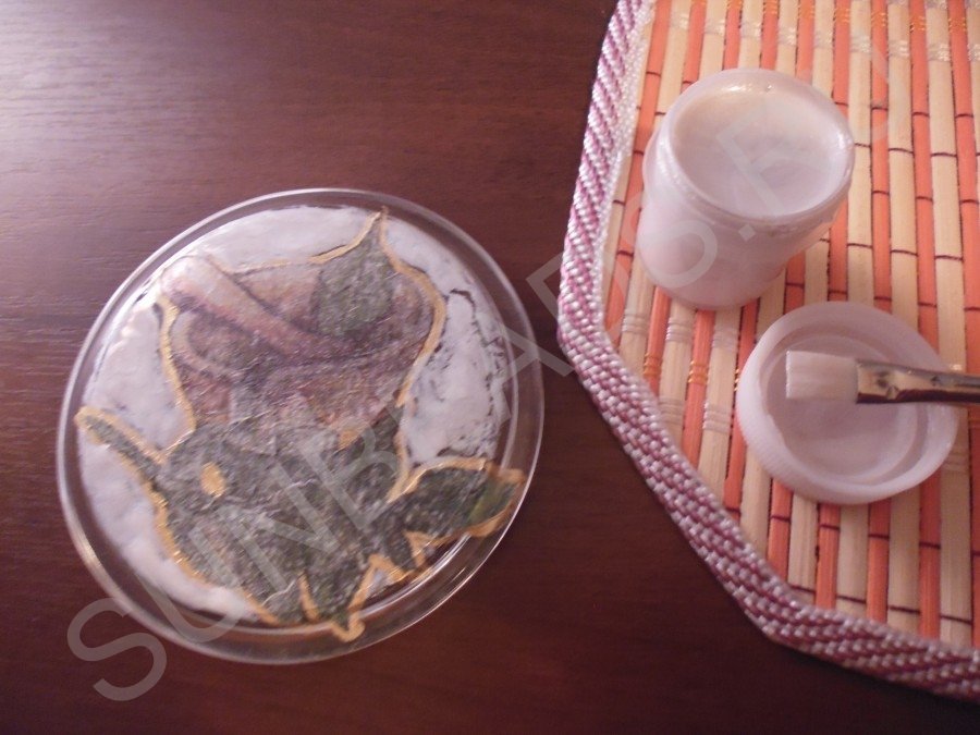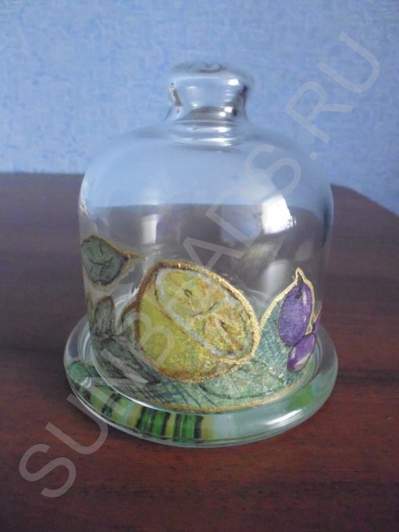 Декупаж на стекле. Блюдо для лимона#