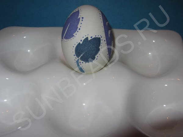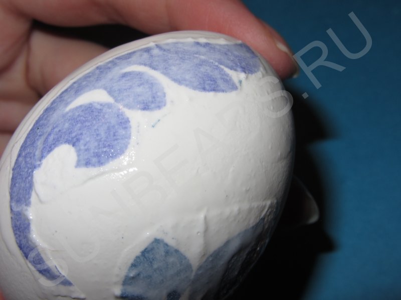 6. Приклеиваем еще несколько листиков, хаотично разбрасывая их по всей поверхности яйца. Ждем когда когда клей хорошо высохнет. Для этого потребуется несколько часов.