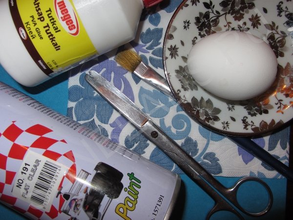 Для творческих натур, предлагаю простой мастер-класс по декупажу пасхального яйца. В данном способе украсить яйцо к празднику отсутствует один шаг, покрытие яйца краской. Сделано это по простой причине: поверхность яйца имеет прекрасный белый цвет и фактуру, скрывать которую под слоем краски нет смысла. Если вы решите декорировать вареное яйцо, которое впоследствии планируется съесть, то вместо клея используйте яичный белок и не фиксируйте лаком окончательный результат декупажа яйца.