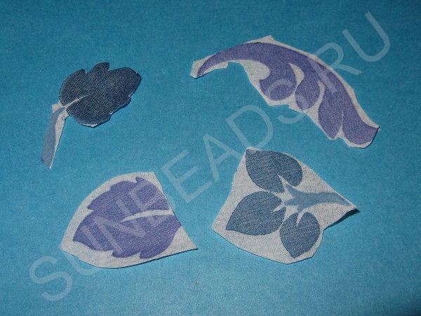 2. Вырезаем несколько мотивов. Не старайтесь аккуратно вырезать мотивы по контуру. Так как фон салфетки белого цвета, то и край наклеенного кусочка салфетки не будет заметен.