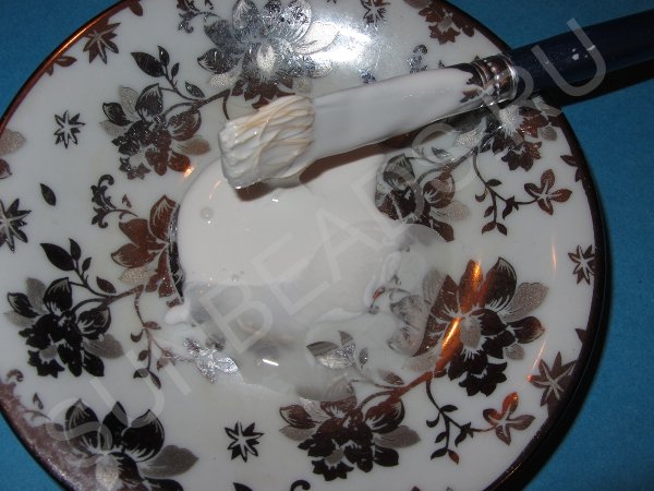 3. В блюдце разводим клей ПВА и воду. Берем равное количество воды и клея.