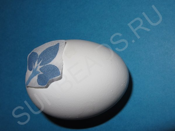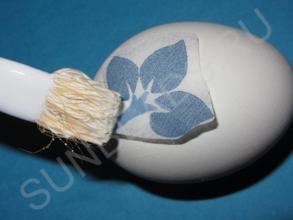4. Прикидываем, как расположить все мотивы для декупажа яйца, и прикладываем первый лист.