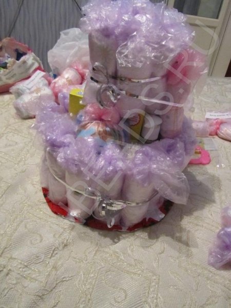 Наверняка у каждого из вас есть такой близкий человек, которого вы хотели бы особенно тепло поздравить в самый радостный момент его жизни, а именно в день рождения его ребенка. Для меня этим человеком является сестра, для которой и был изготовлен торт из детских принадлежностей. Идея такого необычного подарка пришла сама собой. К появлению нашей маленькой племянницы было все готово и даже идеи крупных подарков, таких как коляска, столик для кормления и автомобильное кресло были «заняты» родными и близкими. И для меня остро стал вопрос о том, с каким подарком я могу встретить моих дорогих из роддома. Один визит в крупный магазин детских товаров и у меня в руках куча мелких и нужных любой молодой маме вещей. Оставалось только решить, как все это богатство красиво преподнести. В Интернете я нашла массу вариантов оформления, но его часто трудно повторить не профессионалу. Вот так и появилась идея собрать из нужных мелочей своеобразный торт и поделиться его рецептом со всеми желающими.
