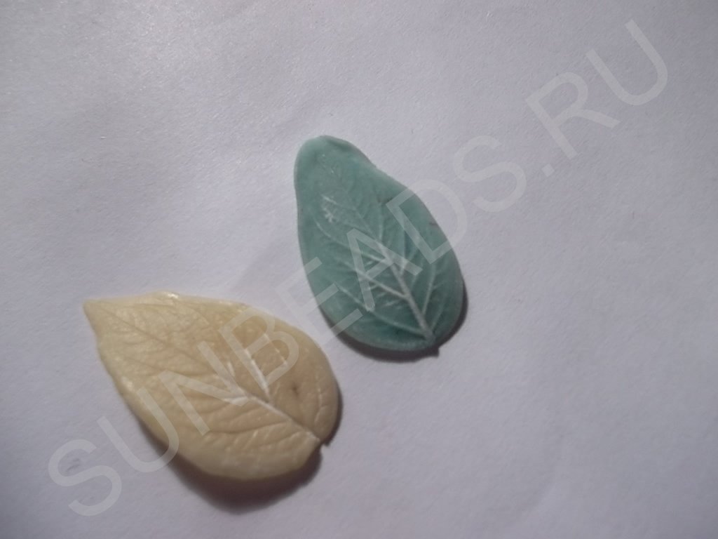 - Делаем большие листья. Для этого будем использовать молды, чтобы размягченный материал к ним не прилип, припудриваем молды тальком или детской присыпкой.