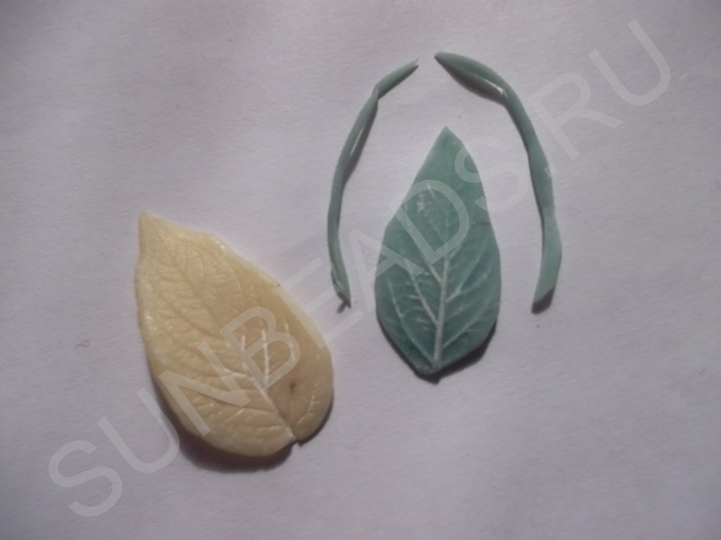 Молды листьев, у нас самодельные. Но можно обойтись и без них, нанеся прожилки на листья с помощью иголки.