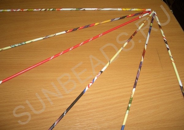 Вверх по трубочкам-стойкам отступают 8 см. и выполняют еще три ряда такого же плетения.