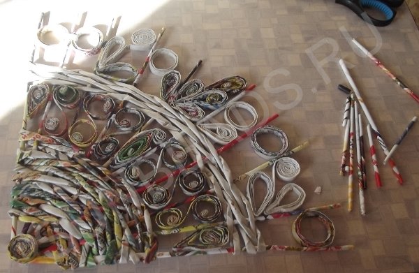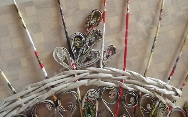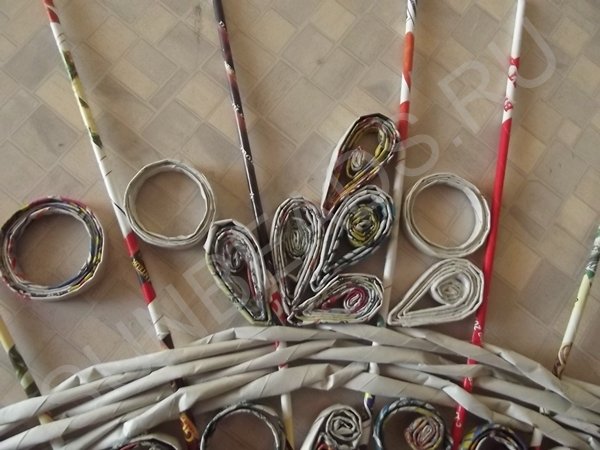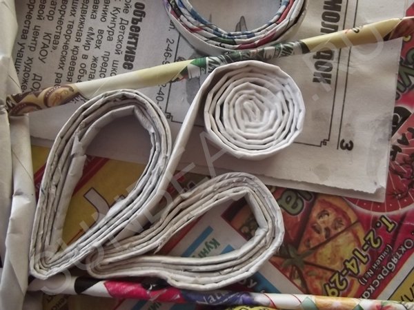 Из газетных палочек скручиваются ажурные фигурки, для данной модели потребуются: