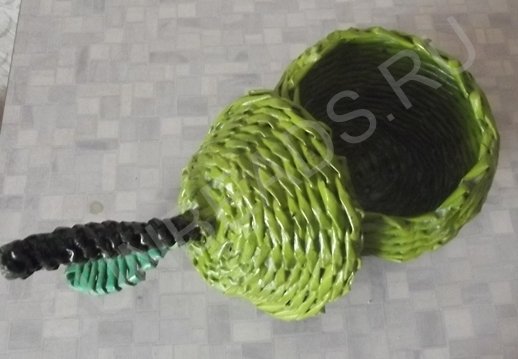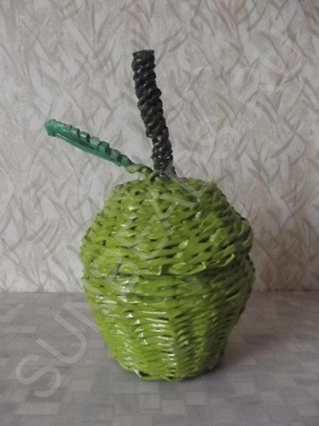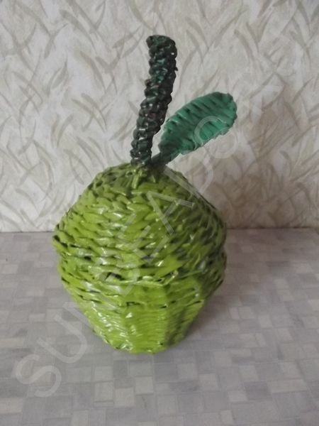 Плетение из бумажной лозы шкатулки «Яблоко»#