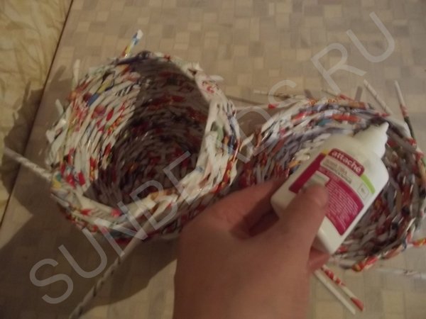 В заключение все стойки сплетаются друг с другом, обрабатываются клеем и через некоторое время, удаляются лишние кончики.