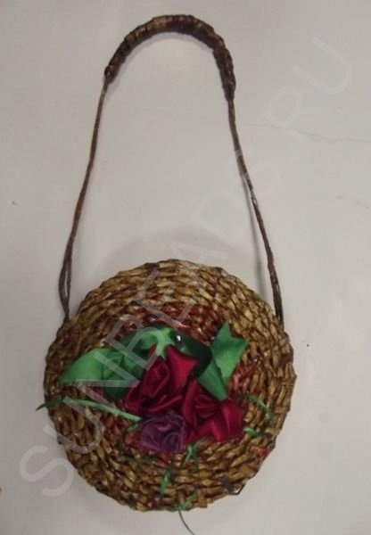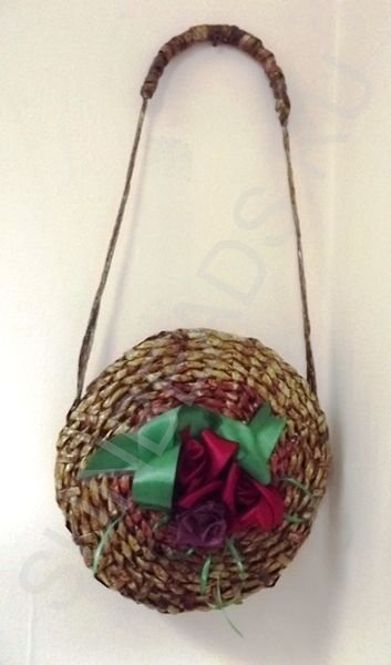 Готовая сумочка покрывается лаком пропиткой для дерева цвета ореха и после полного высыхания украшается лентами.