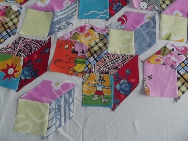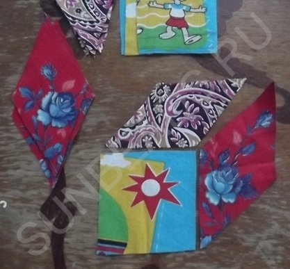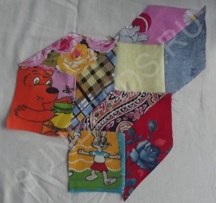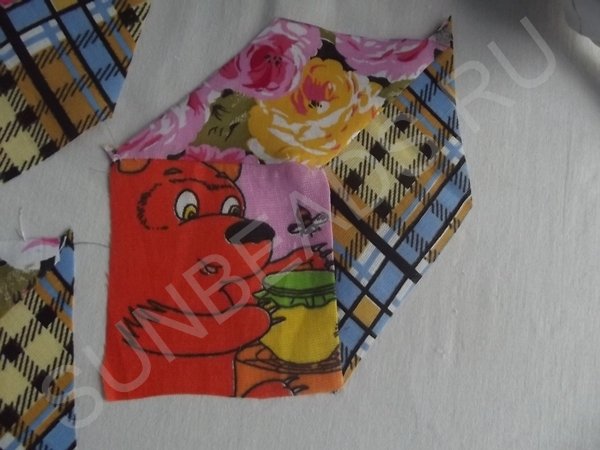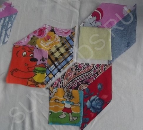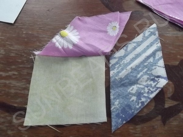 Далее процедура повторяется с оставшимися кусочками ситца трех расцветок.