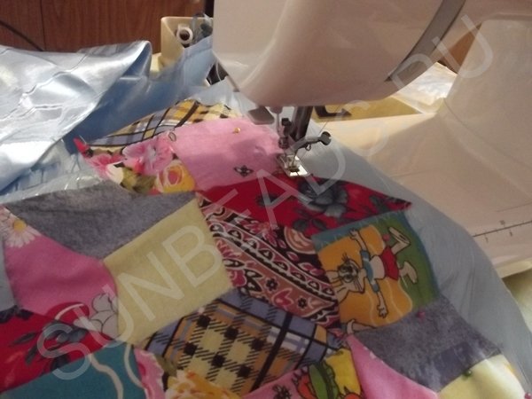Чехол набивается наполнителем (синтепоном) до нужной плотности через оставленную прорезь. Последним действием этот краешек зашивается на швейной машине.