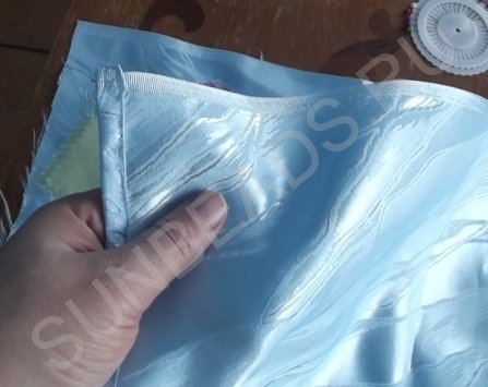 • голубая шелковая портьерная ткань размером 103*43 см;