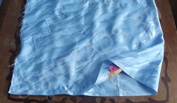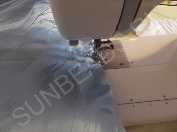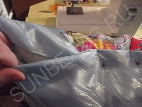 Теперь лицевые стороны отреза складываются вместе и сшиваются по всему периметру, оставив не прошитым небольшой участок.