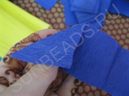 Затем складываем получившийся треугольник слева направо пополам. Это будет ножка цветочка. Вокруг нее будем делать «лепестки».