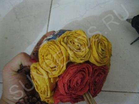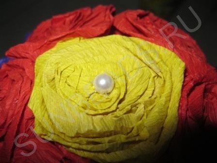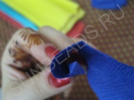 Затем делаем розочки. В данном мастер-классе использовалась гофрированная бумага различных цветов. Вы можете остановить свой выбор на только одном.