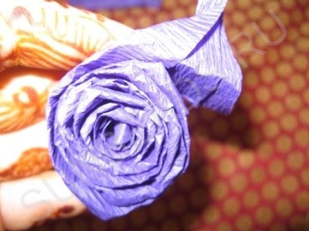 Таким образом продолжаем до самого конца. Хвостик приклеиваем к розочке с помощью клея. Первый цветочек готов.