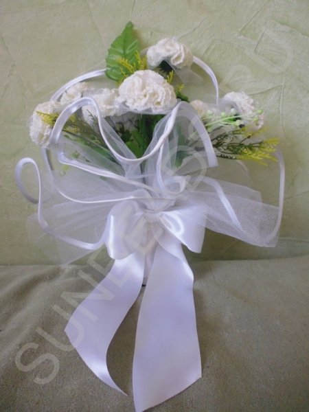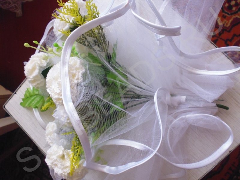 Ни для кого не секрет, что подготовка к свадьбе дело хоть и приятное, но весьма хлопотное. Необходимо продумать массу мелочей, приобрести множество всевозможных аксессуаров для разных конкурсов и обрядов. Западная традиция бросать букет невесты незамужним девушкам весьма успешно прижилась на наших свадьбах. В свадебных салонах, конечно же, есть большой выбор искусственных букетов, но все они какие-то безликие. Эксклюзивный, неповторимый букет можно изготовить собственными руками, получив огромное удовольствие от творческого процесса. Вот пример моего полета фантазии.