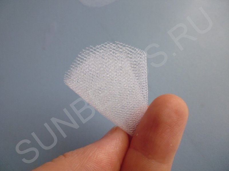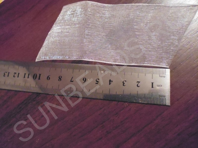 Наметочным швом прошиваем посередине вдоль каждого куска органзы и туго стягиваем, закрепив нитку.