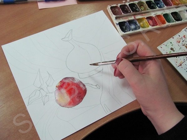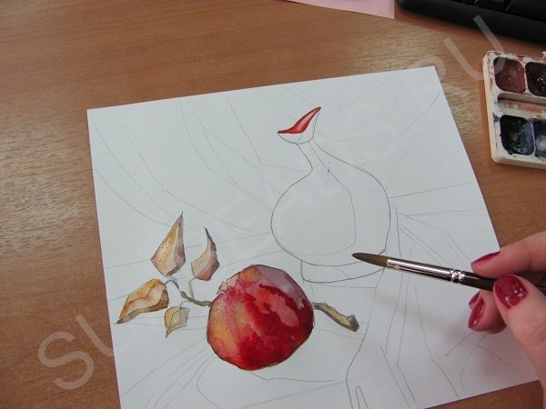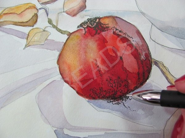 Мастер-класс акварельной живописи «Красный гранат на белом фоне»#