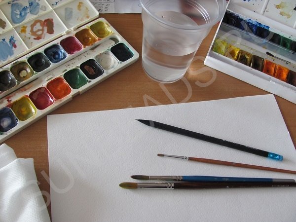 Сегодня мы будем рисовать пасмурный лес. Для работы понадобится акварель, кисть, акварельная бумага.