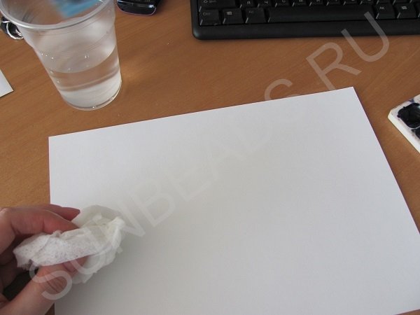 Пока бумага окончательно не высохла, сбрызгиваем ее водой, чтобы по всей поверхности появились живописные пятнышки.
