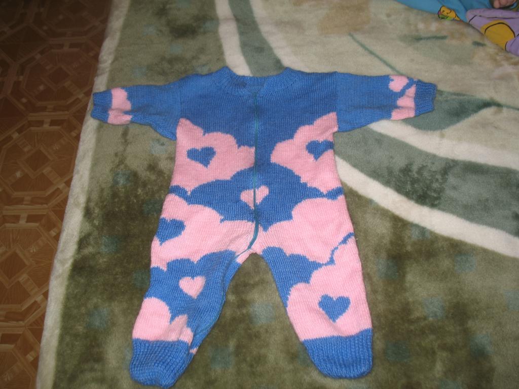 Уютный и теплый комбинезон из мягкого и не колючего мохера ручной вязки. Тонкий, в одну нить комбинезон не стесняет движений на улице с зимним комплектом верхней одежды.