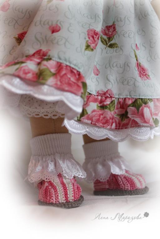 Кукла выполнена из кукольного трикотажа (хлопок), ручки и ножки шарнирно ниточное крепление ( кукла и сидит, и стоит без поддержки). Волосы вязаный паричок с равномерно вшитыми волосиками. Можно расчесывать и делать самые разнообразные прически.