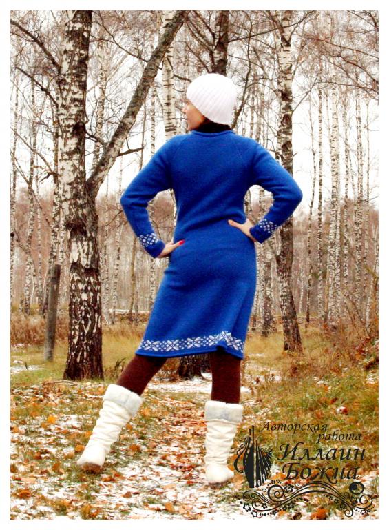Трикотажное платье. Авторская модель. С одним одиноким оленем :) Манжеты и подол дополнены орнаментом.