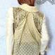 Перед и спинка связаны из полушерстяной пряжи нежно-желтого цвета и болотно-зелёного оттенка. Рукава из смесовой пряжи с ангорой, молочного цвета, декорированы ажурными вставками и металлическими хольнитенами.