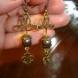 Изящные серьги 6,5 см. Изготовлены из филиграни под бронзу, кристаллов Сваровски и стеклянных бусин под жемчуг диаметром 8 мм.