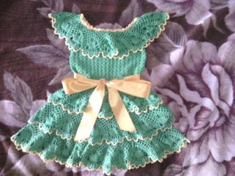 Платье зеленого цвета. Связано крючком со 100% хлопка. На талии желтая атласная лента. На возраст 4-5 лет. Могу повторить любого цвета по вашим меркам.