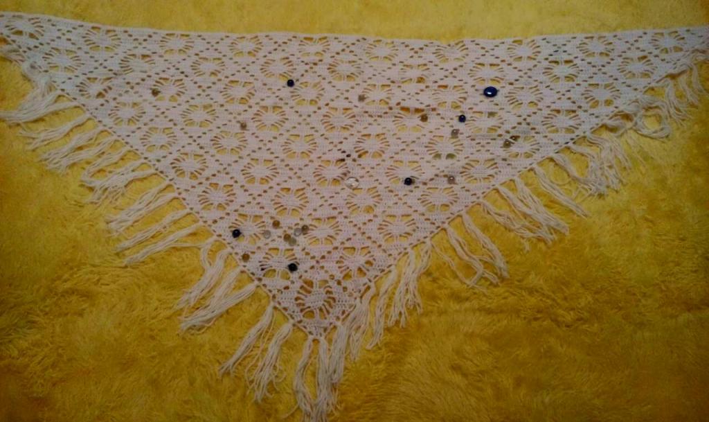 Изделие ручной работы. Шаль с классическим узором. Пряжа шерсть 50% и акрил 50%