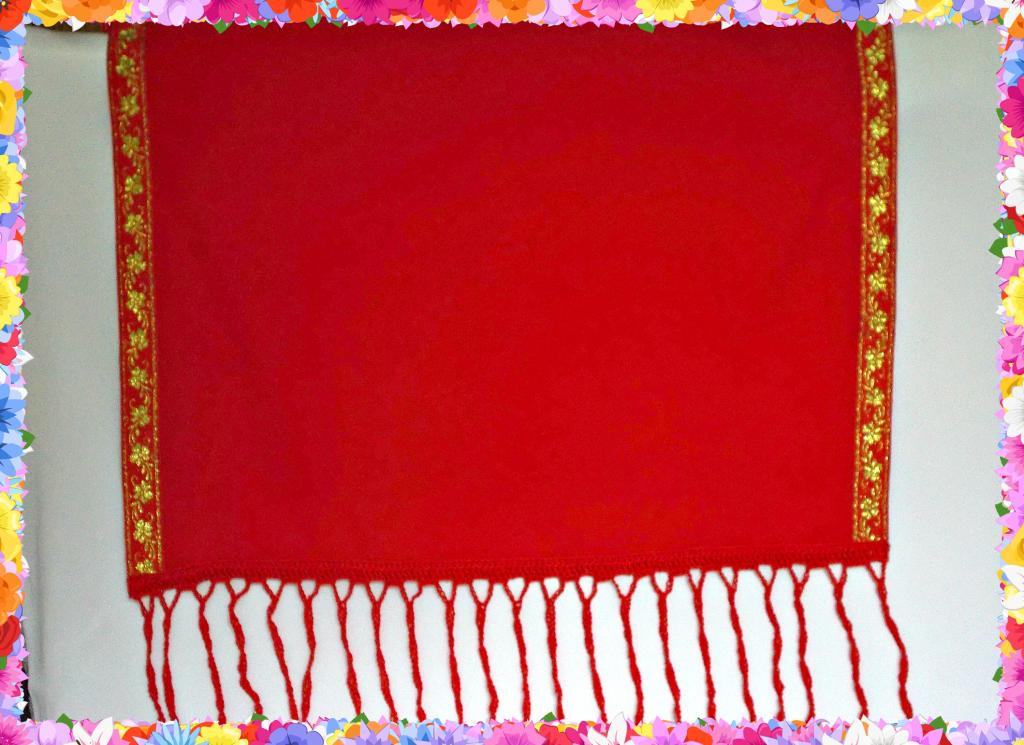 Красный цвет превосходно сочетается с самыми разными цветами: золотым, красным, черным, серым, бежевым или коричневым. Палантин «Алая заря» модель 2 можно носить с платьем, жакетом, плащом и даже пальто.