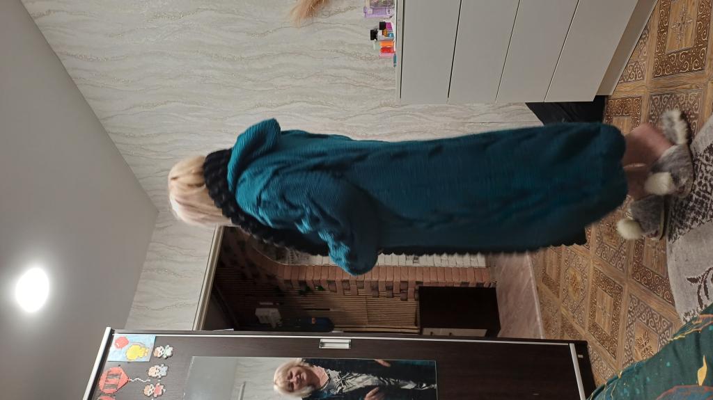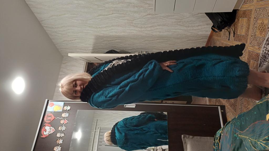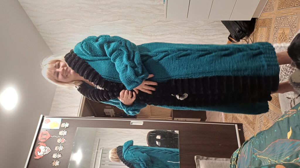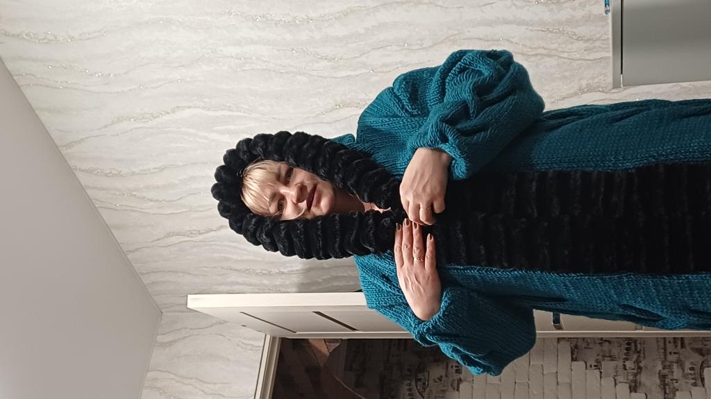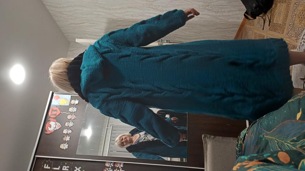 Тёплое, длинное пальто с капюшоном, экомех, пряжа